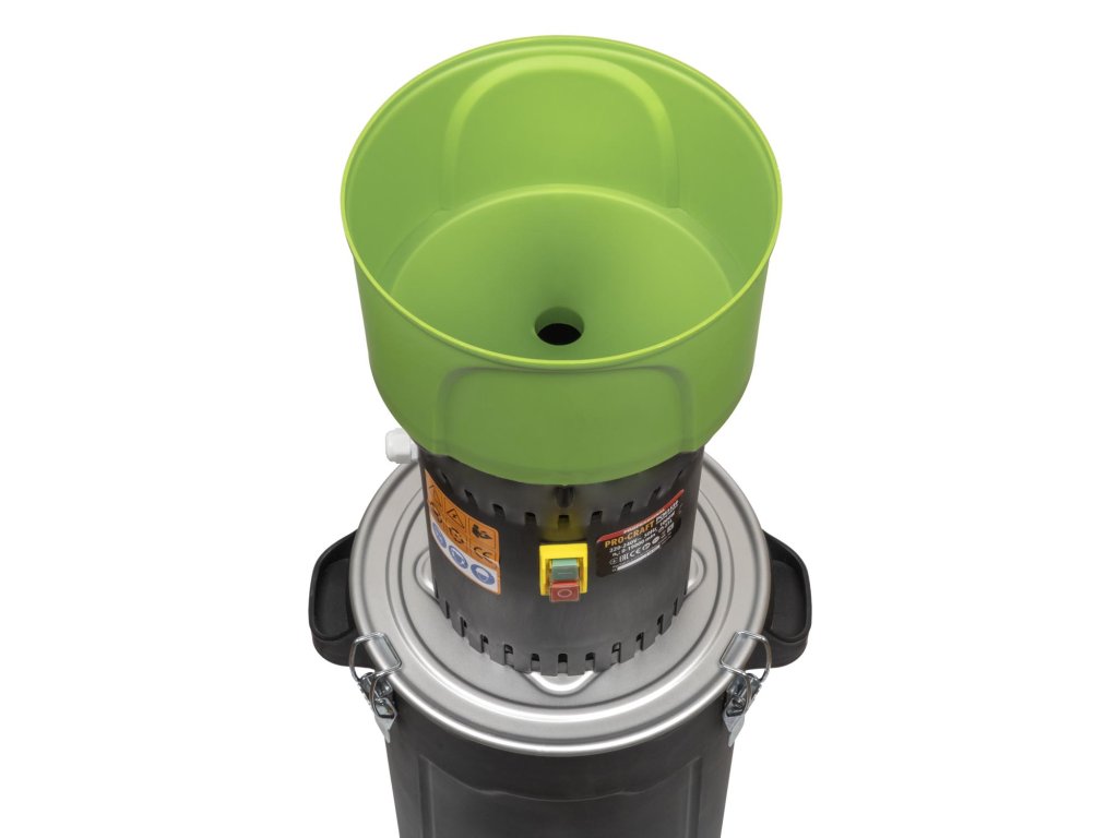 - Zásobník o objemu 25 l umožňuje kontinuální zpracování většího množství krmiva.