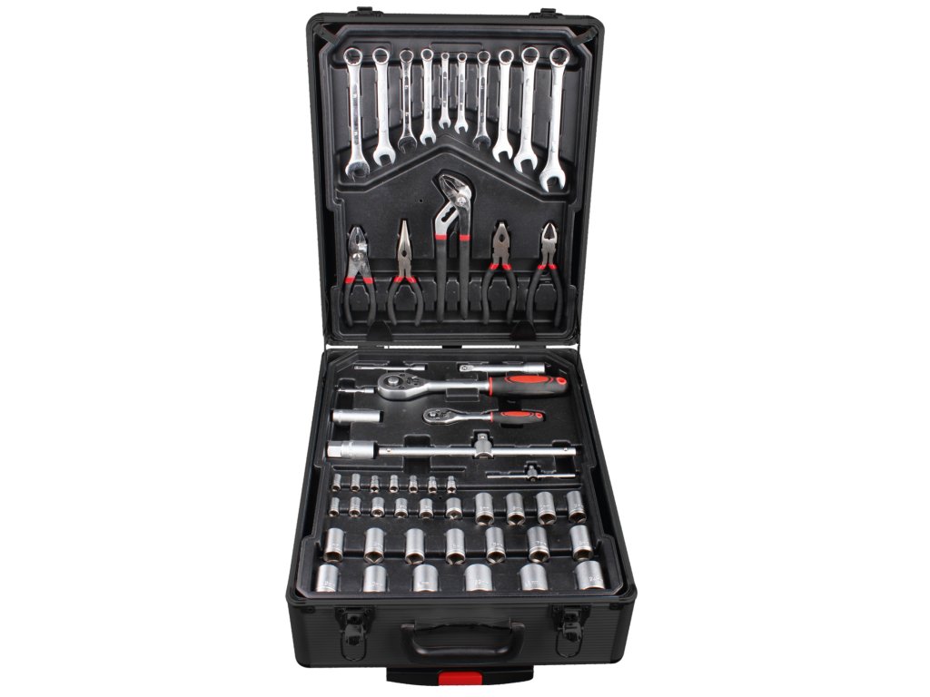 Sada 188 dílů nářadí v hliníkovém kufru na kolečkách. Nářadí uloženo na plastových platech s prolisy pro každý kus zvlášť, což zabraňuje smíchání a vysypání nářadí při převozu. Nezbytný pomocník každého kutila a montéra, ideální pro převoz v autě.Doplňkové parametry